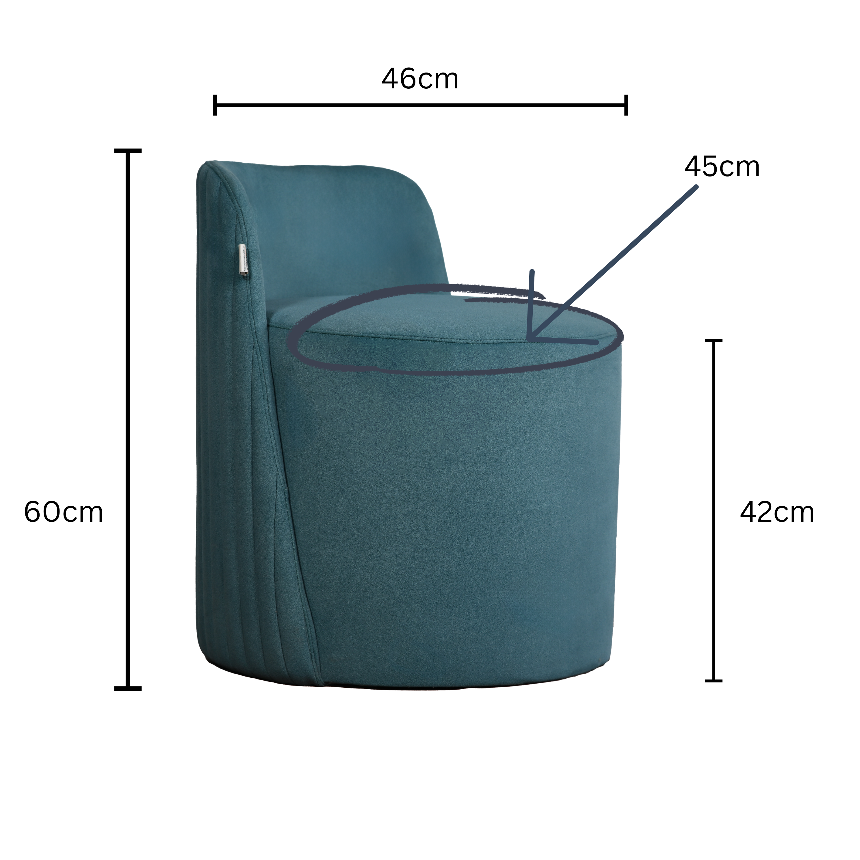 Dimensions : Sitting Height - 42cm, Height - 60cm , Width- 46cm , Length-50cm