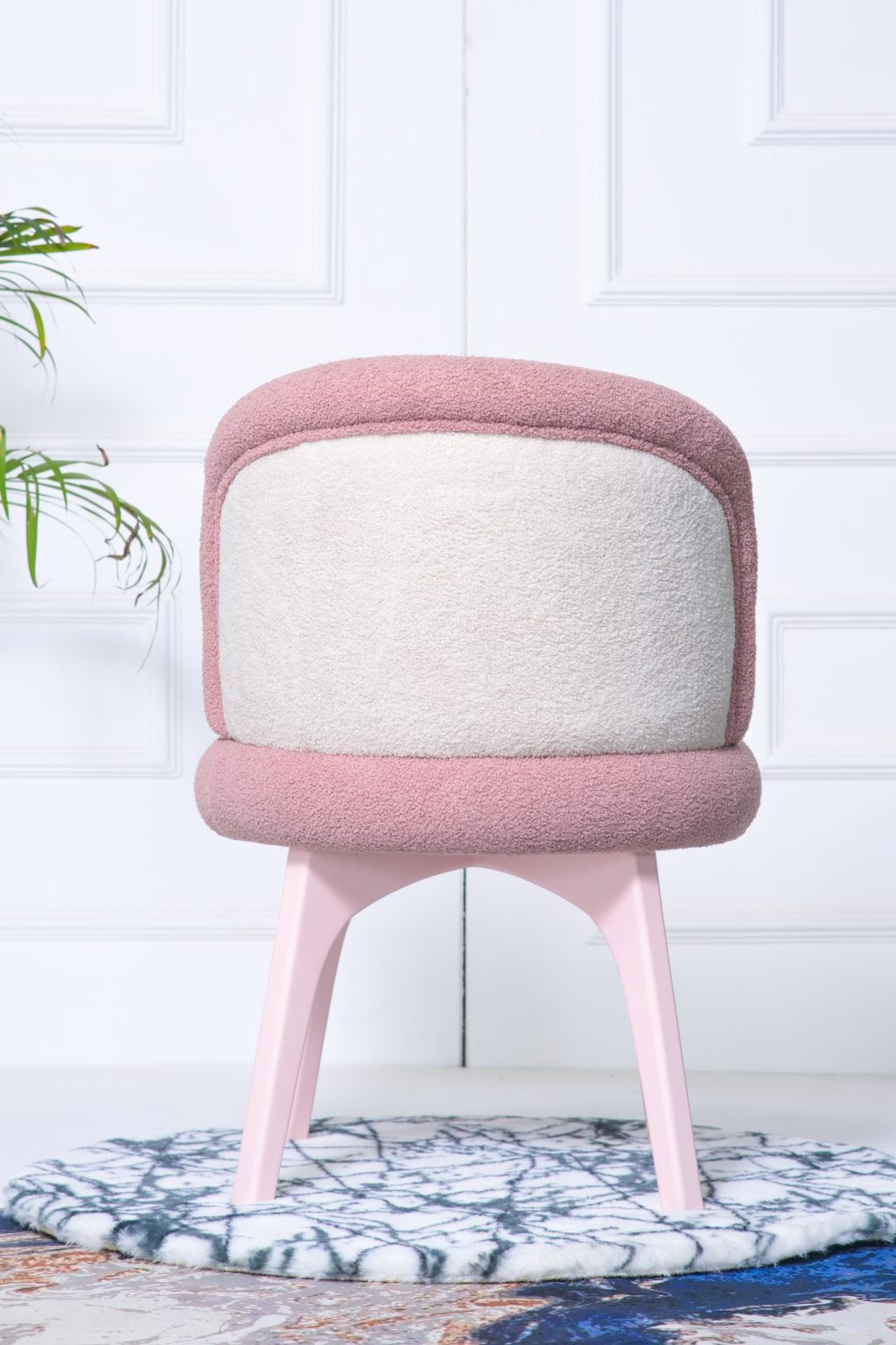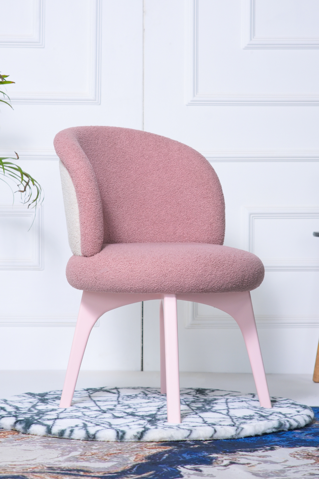 Add a chic touch to your interiors with this Pink & White Buckley Fabric Chair, designed in a modern silhouette for versatile use. Upholstered in premium Buckley fabric, the chair offers a soft, textured feel with long-lasting durability. The rounded backrest and cushioned seat provide excellent comfort, while the sleek tapered legs add a contemporary charm. Perfect for both home and commercial spaces, this chair blends elegance with functionality.