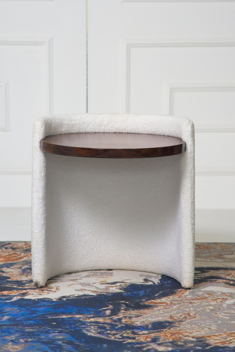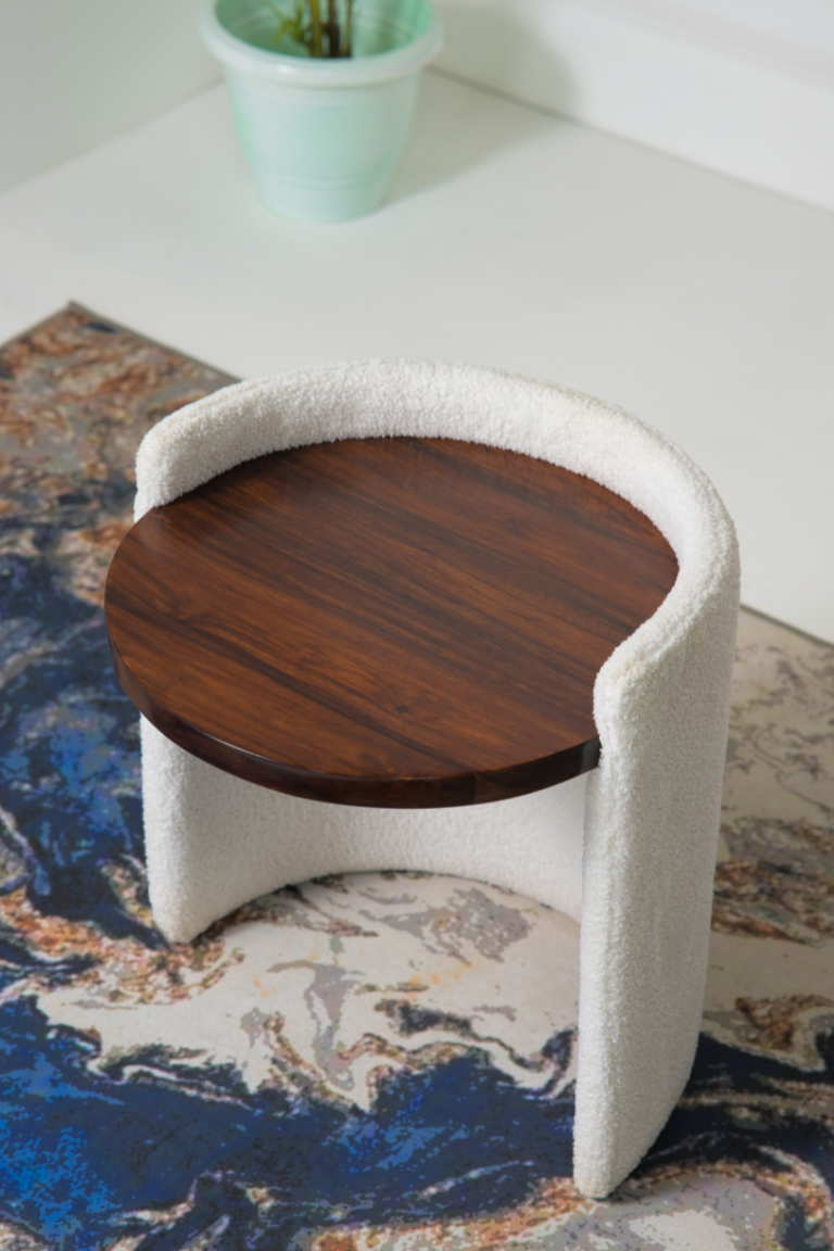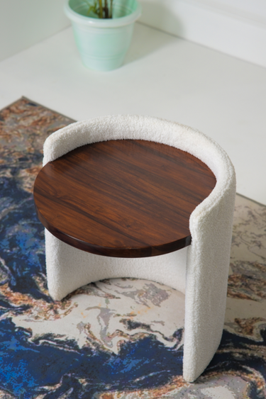 Crafted for durability and sophistication, this side table blends natural warmth with contemporary upholstery, making it versatile for both modern and classic interiors.